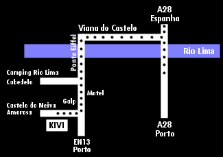 De norte ou de sul, siga a A28 até Viana do Castelo, vá em direcção ao centro e passe a ponte Eiffel. Vire na segunda à direita para a Amorosa.
